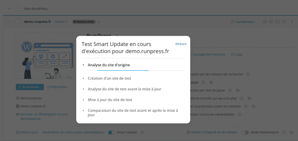 C’est là qu’intervient Smart Update, une fonctionnalité révolutionnaire intégrée à notre hébergement RunPress via WP Toolkit.